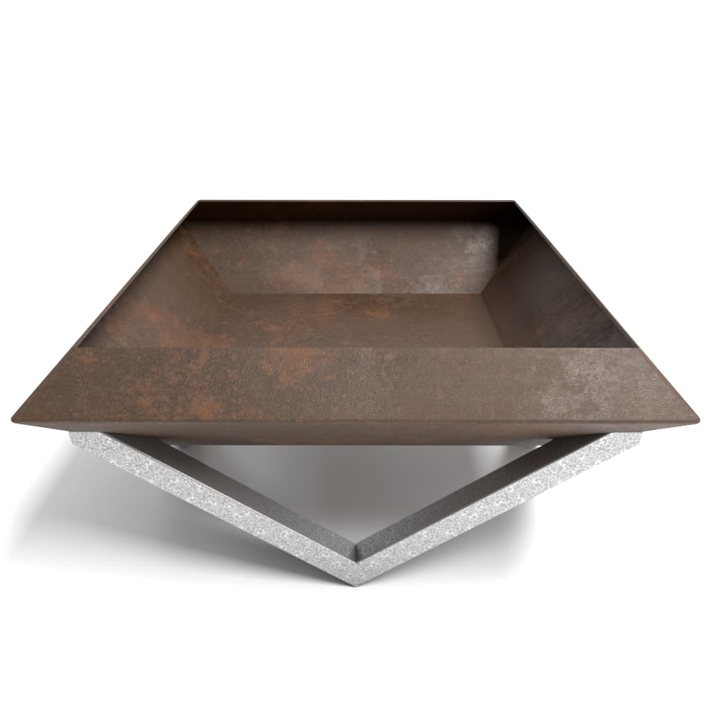 Den öppna toppen och slutna botten ger en distinkt och funktionell estetik. Den kvadratiska formen ger ett modernt intryck, medan det 4 mm tjocka stålet gör eldstaden robust och hållbar.